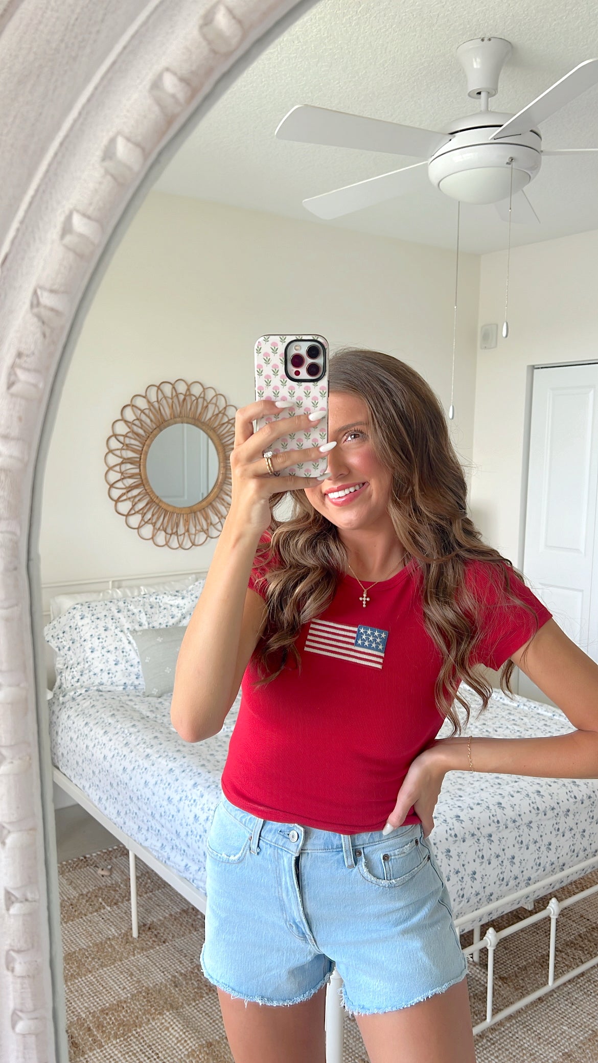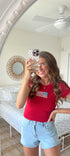 Short sleeve baby tee collection featuring American flag patch