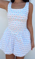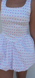 White coquette tennis dress with blue and pink bow detailing