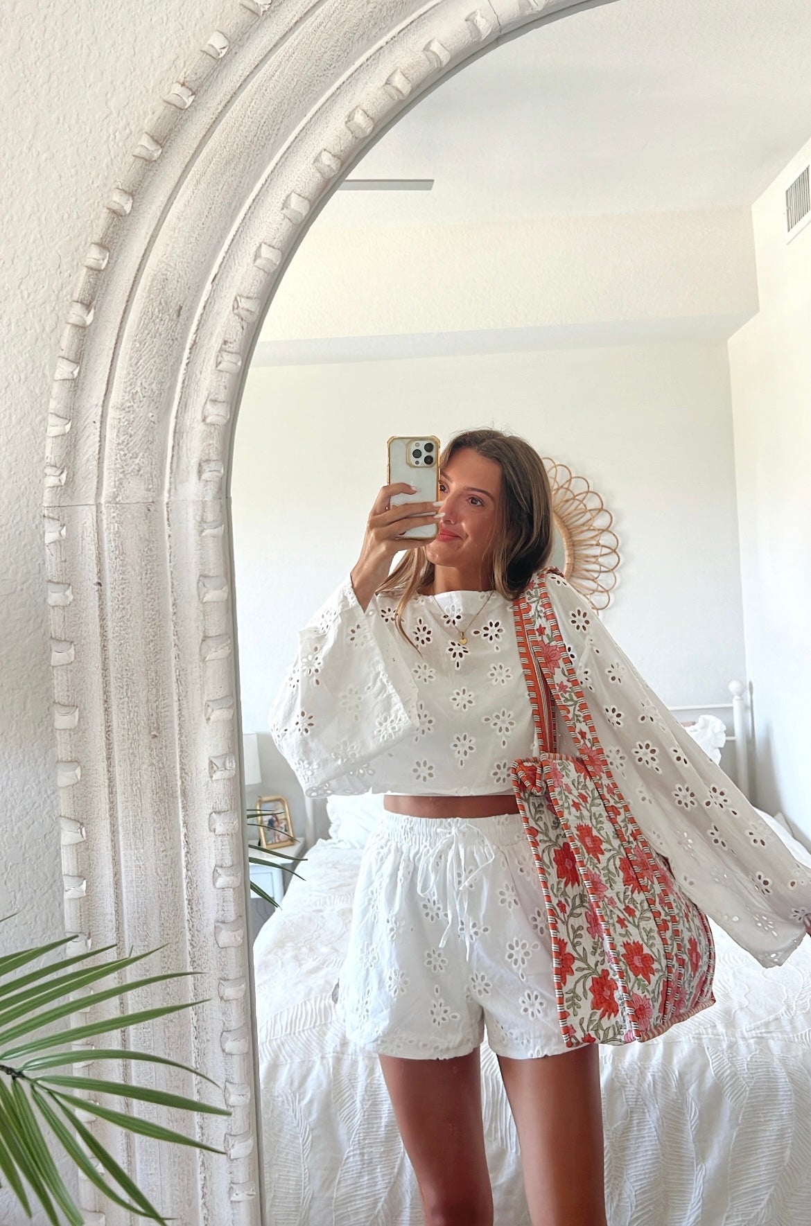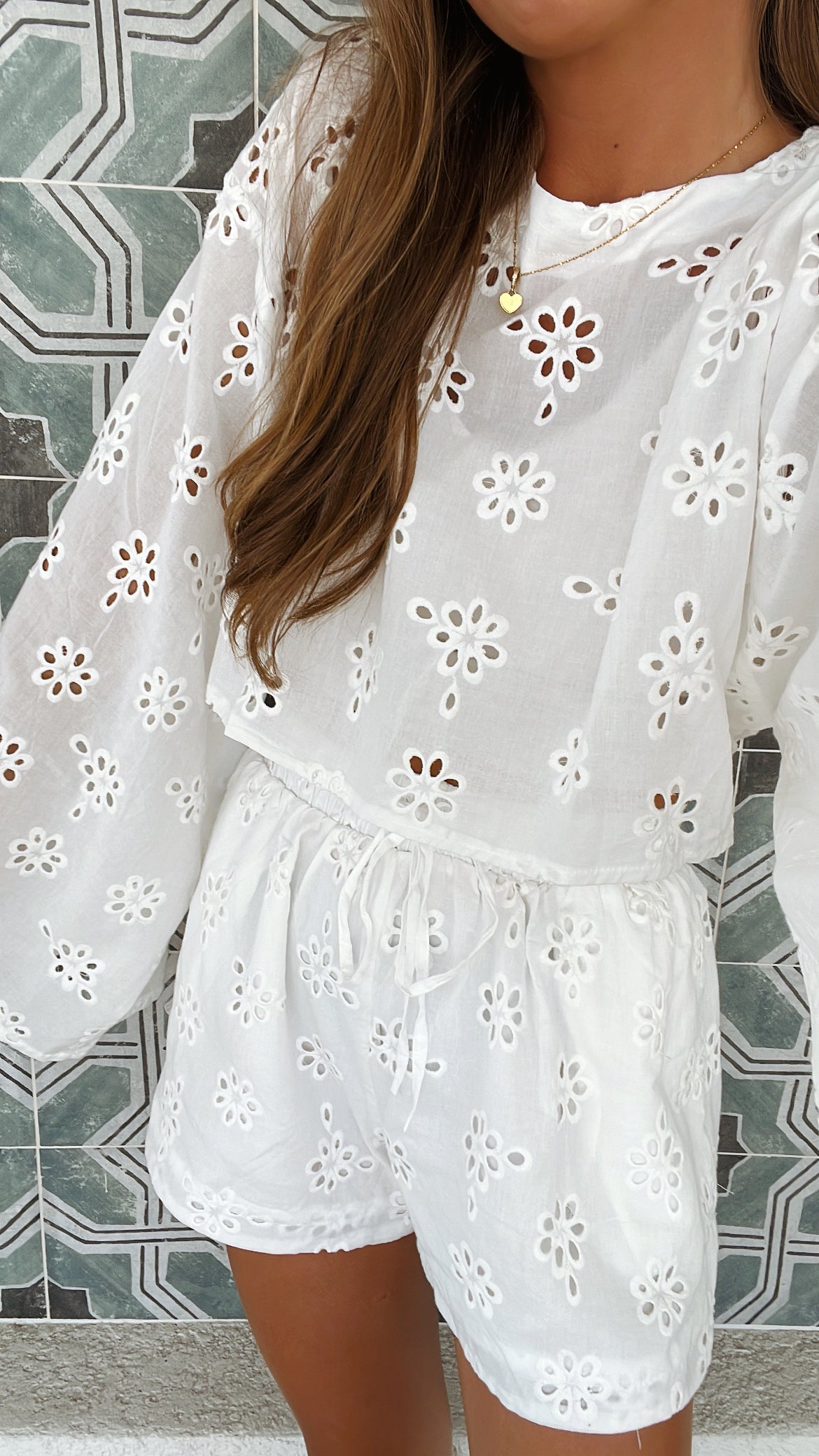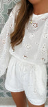 Eyelet detailed top and bottom which makes for the most dainty & girly set