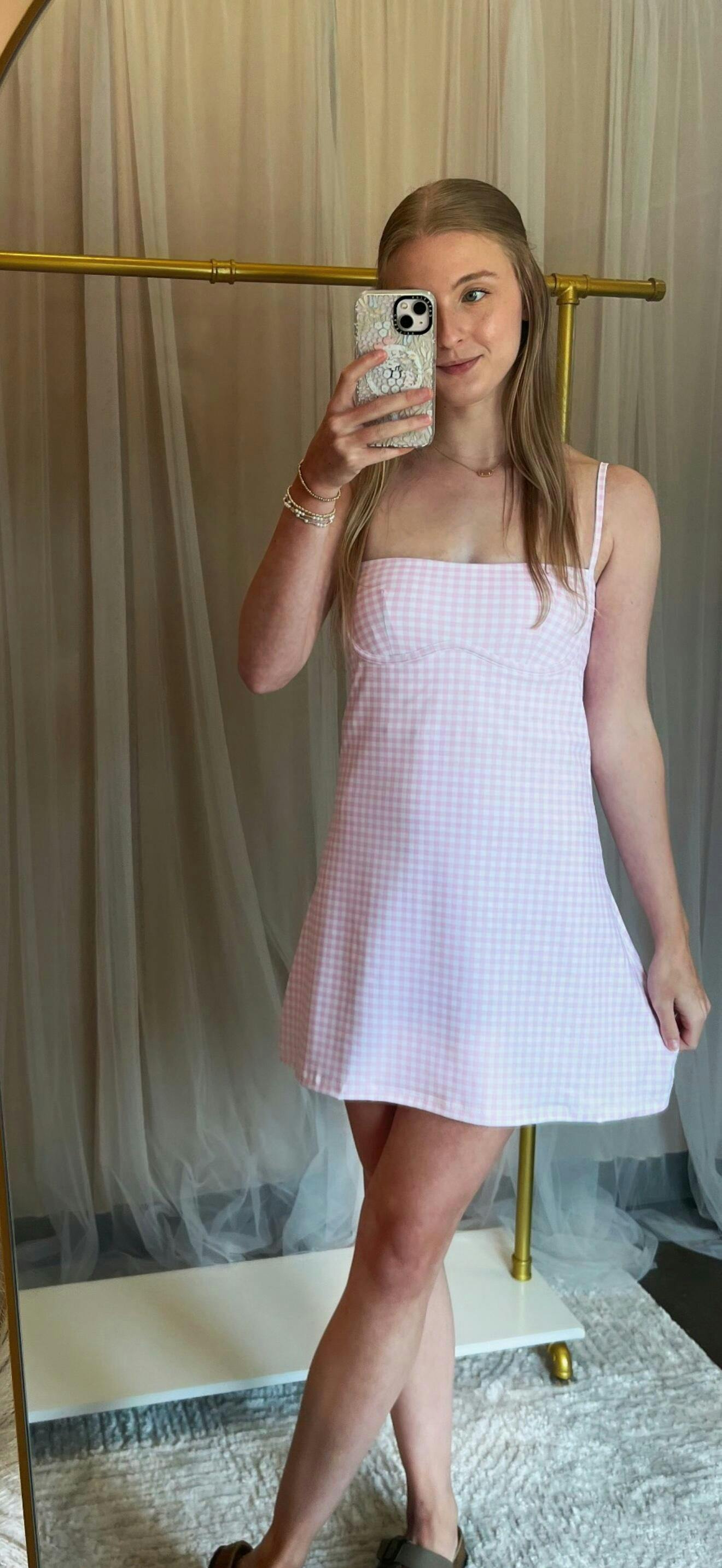Sweetheart tennis dress with built in padding and spandex shorts