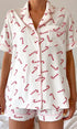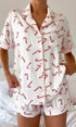 The festive candy cane print strikes the perfect balance between playful and sophisticated, while delicate contrast piping and an adjustable tie waist add understated elegance. Whether you're settling in for holiday movies, cozying up with hot cocoa, or creating matching moments with loved ones, these lightweight shorts deliver all-day comfort. So soft and stylish, you'll find yourself reaching for them well into the new year!