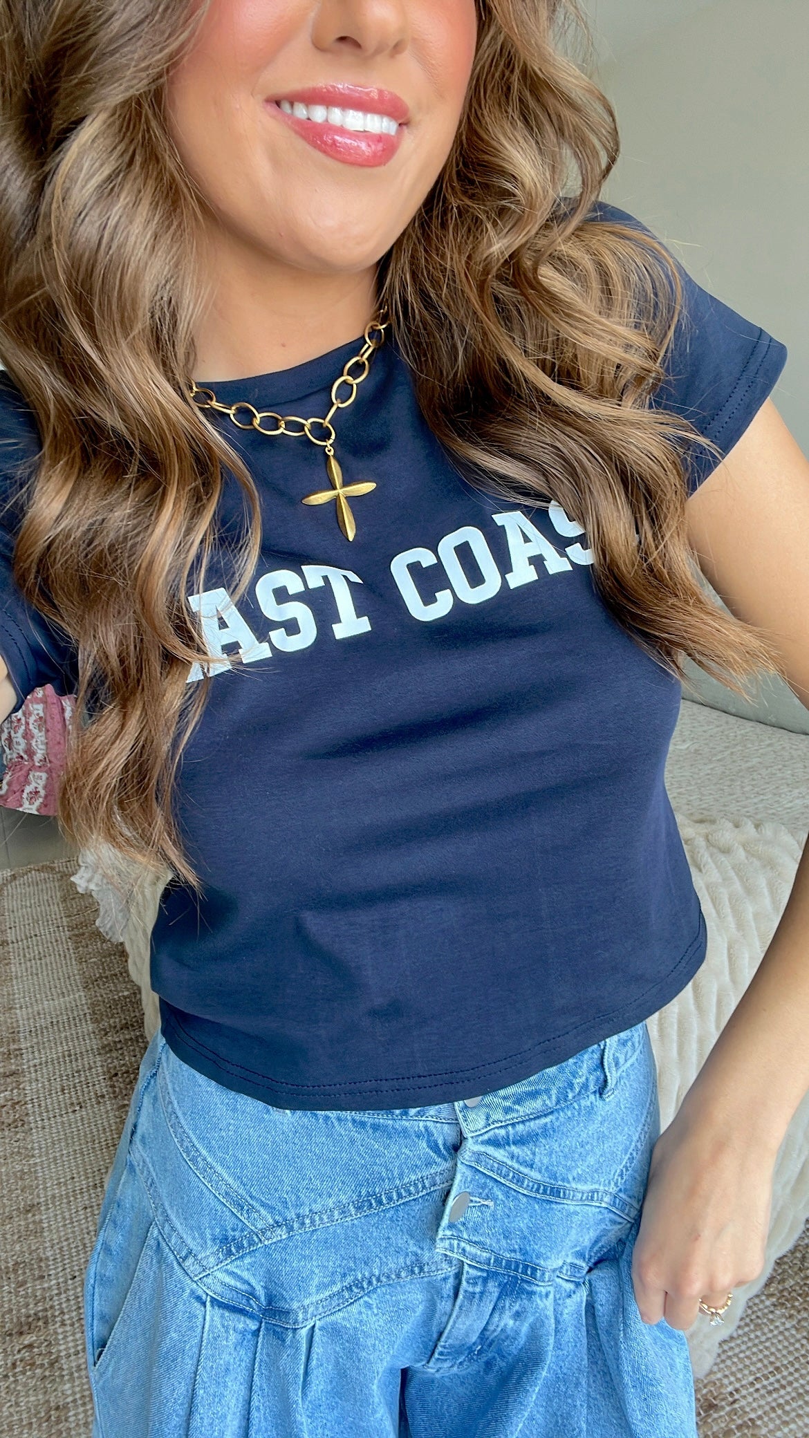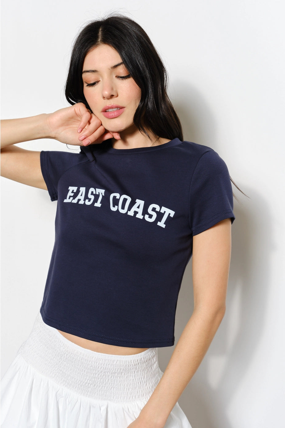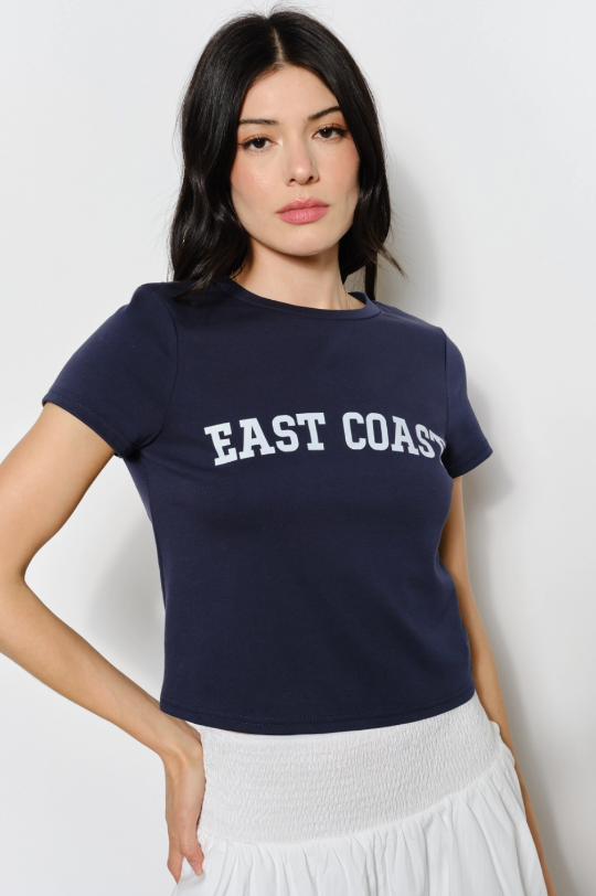 'East Coast' navy blue baby tee