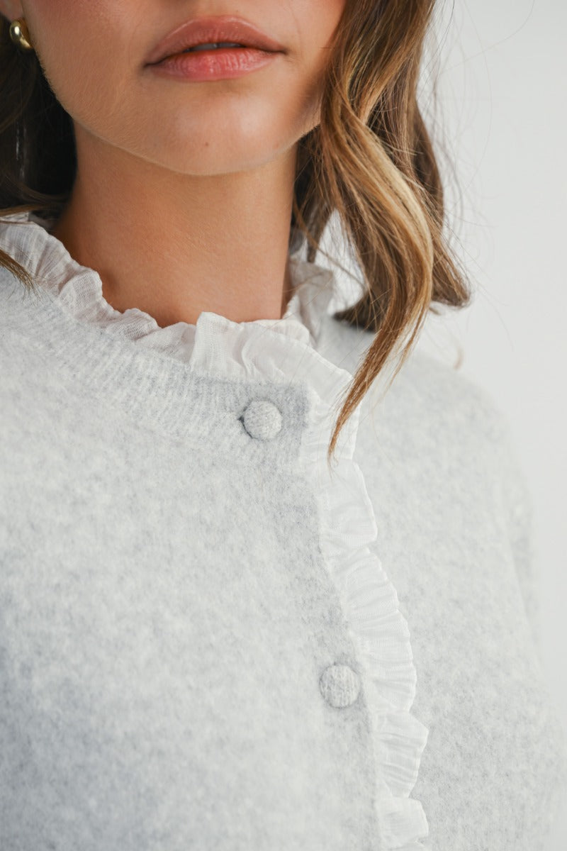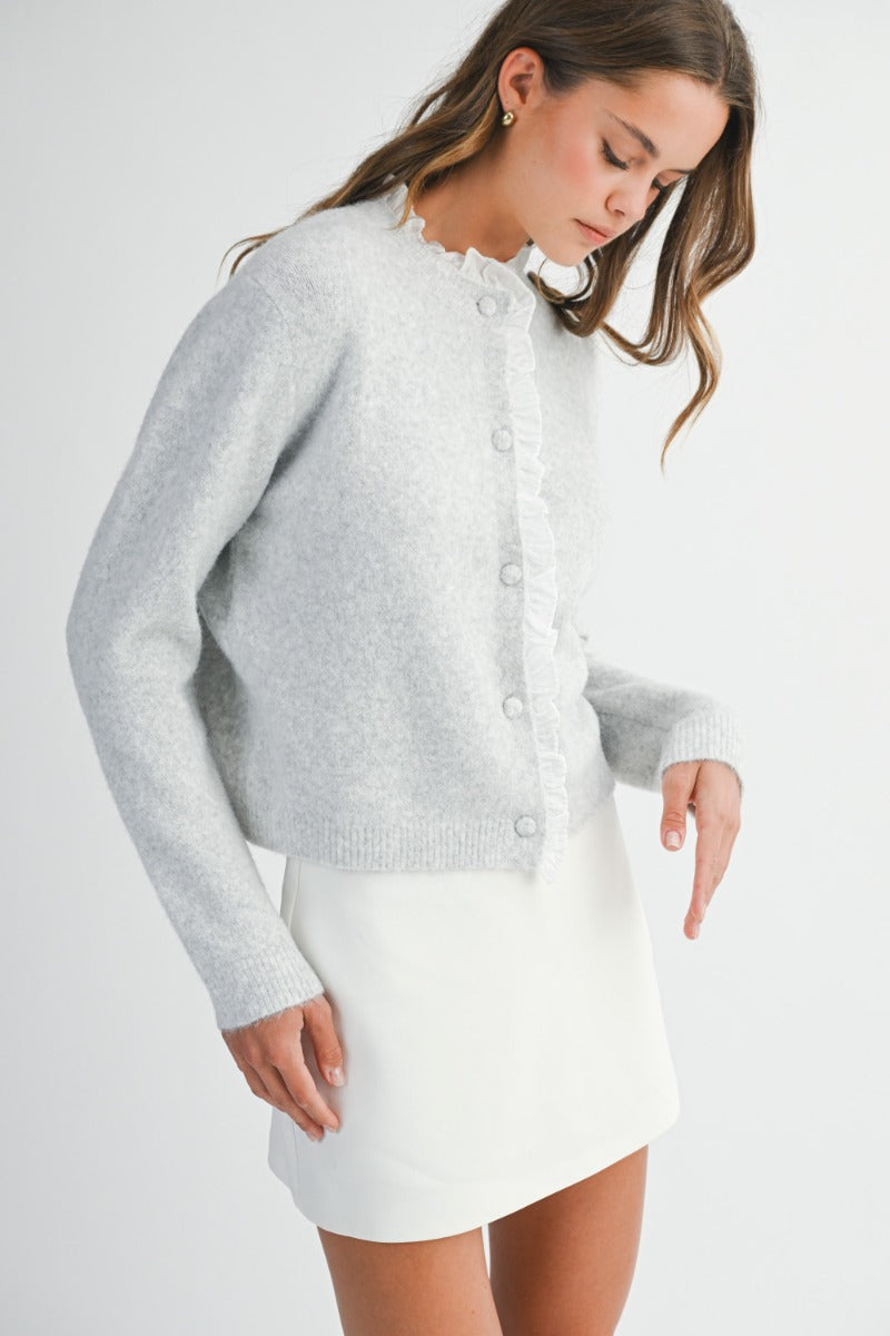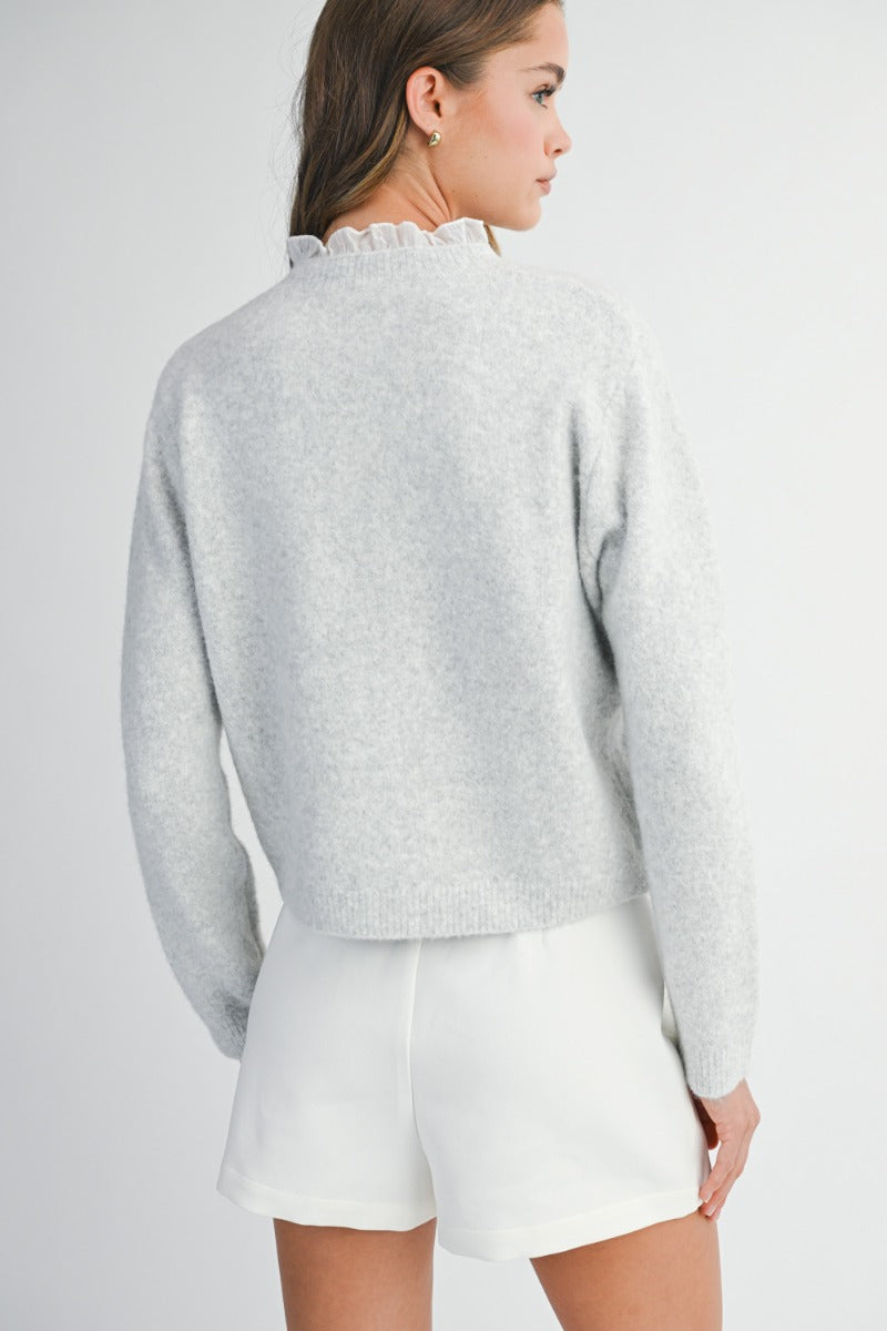 Soft, delicate, and endlessly wearable, the Eden Lace Cardigan is a timeless layering piece with a touch of romance. Featuring a classic button-front design trimmed with dainty lace along the neckline and placket, it blends cozy texture with feminine detail. Its lightweight knit makes it perfect for year-round wear!