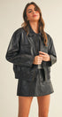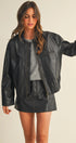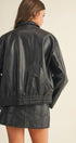 The Ellyson Leather Zip Jacket pairs a timeless silhouette with modern edge. Crafted from washed vegan leather, it features a full zip front, collared neckline, and subtle seaming for a clean, structured finish. Its relaxed shape layers effortlessly over knits and dresses alike, making it a versatile staple for cooler days and evenings out.