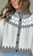 The Fairisle Cardigan is a classic knit style featuring a traditional fair isle pattern across the neckline, cuffs, and hem. Designed with a button-front closure, ribbed trim, and a relaxed fit.