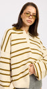 With its relaxed fit, wide sleeves, and warm camel stripes against a creamy base, Gia is made to be effortlessly chic and endlessly comfy. Pair it with jeans and boots for Sunday service, leggings for a study day, or even shorts when the weather can’t decide.