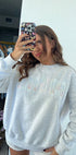 The fit is relaxed and slightly oversized, perfect for layering over leggings, jeans, or your favorite lounge shorts. For a truly roomy, cozy look, we recommend sizing up. Designed with premium embroidery and durable fabric that holds its shape wash after wash, this crew is made to be worn, loved, and lived in.