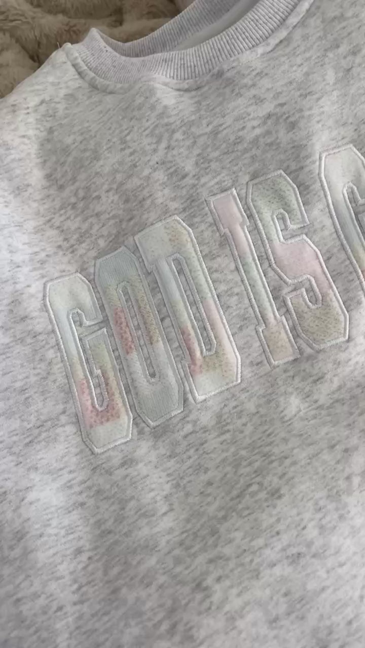 The God Is Good Crew is your go-to reminder of His goodness, wherever the day takes you. Made from soft, high-quality fabric with pastel embroidered lettering across a pearl grey base, it pairs comfort with a timeless faith-inspired design.