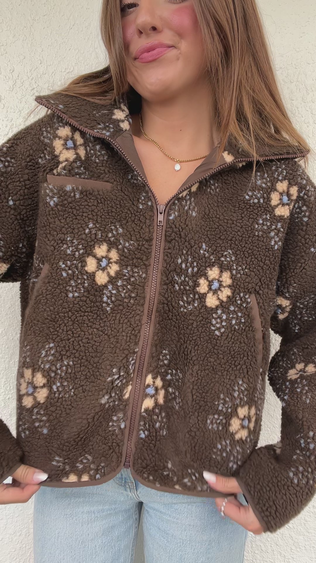 The zip-up front and roomy pockets make it as practical as it is cute — whether you’re grabbing coffee, heading to the pumpkin patch, or strolling downtown.