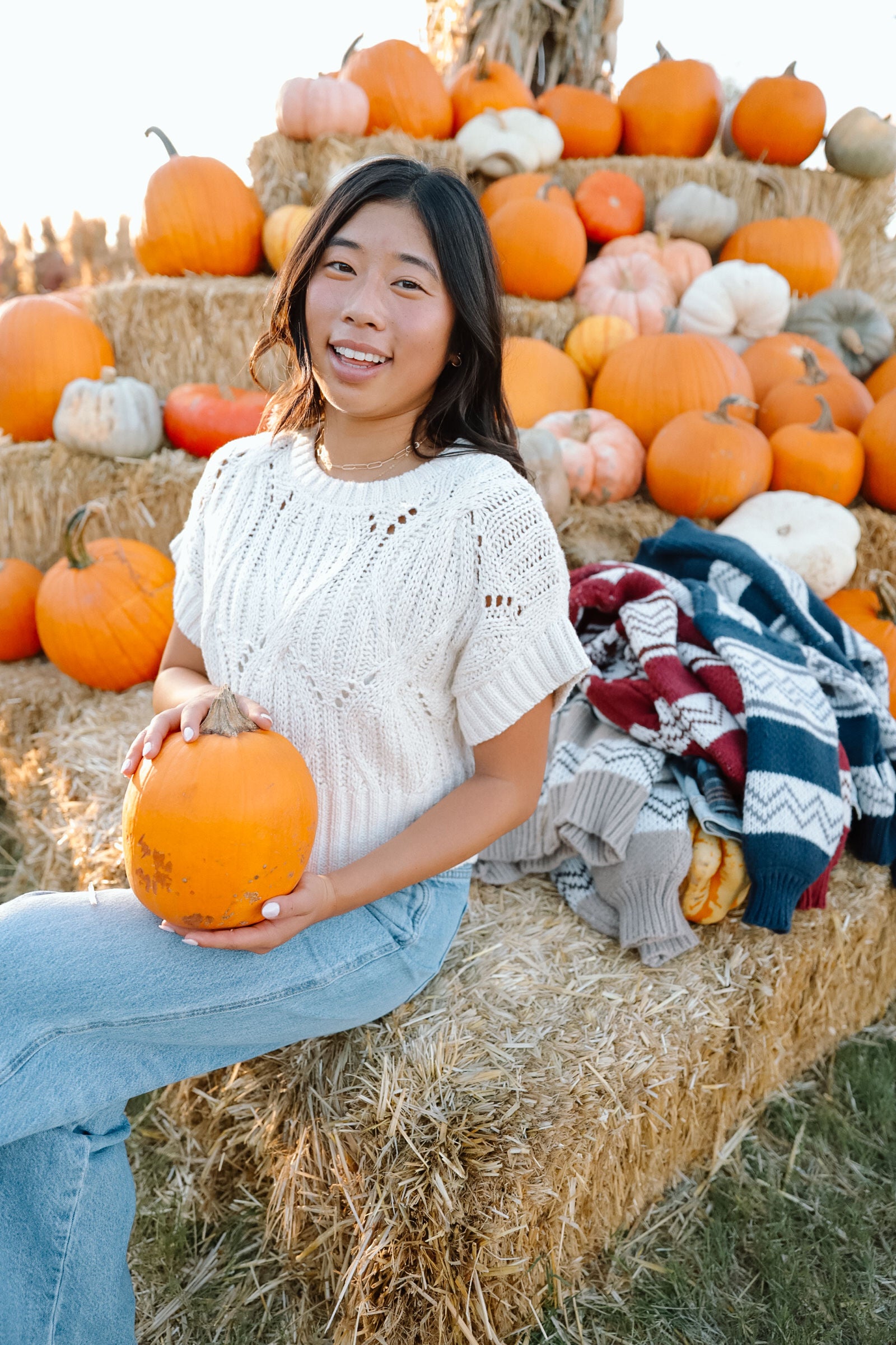 The Scarlett Sweater brings a fresh take on cozy knits with its cropped silhouette and delicate cable-inspired pattern. Featuring short sleeves, ribbed hems, and airy knit detailing, it’s the perfect piece to carry you from warm afternoons into crisp evenings. Style it with high-waisted denim, skirts, or layered under a jacket for that effortlessly chic fall look.