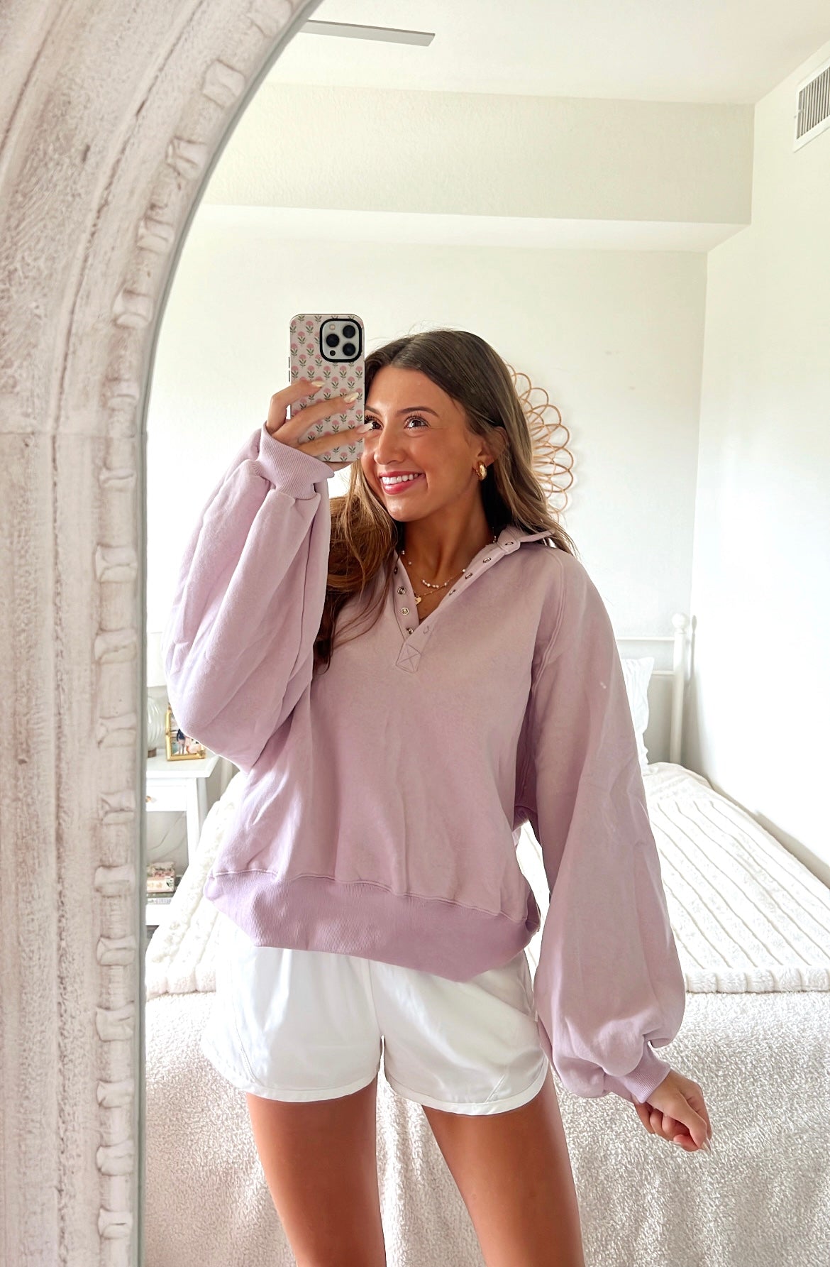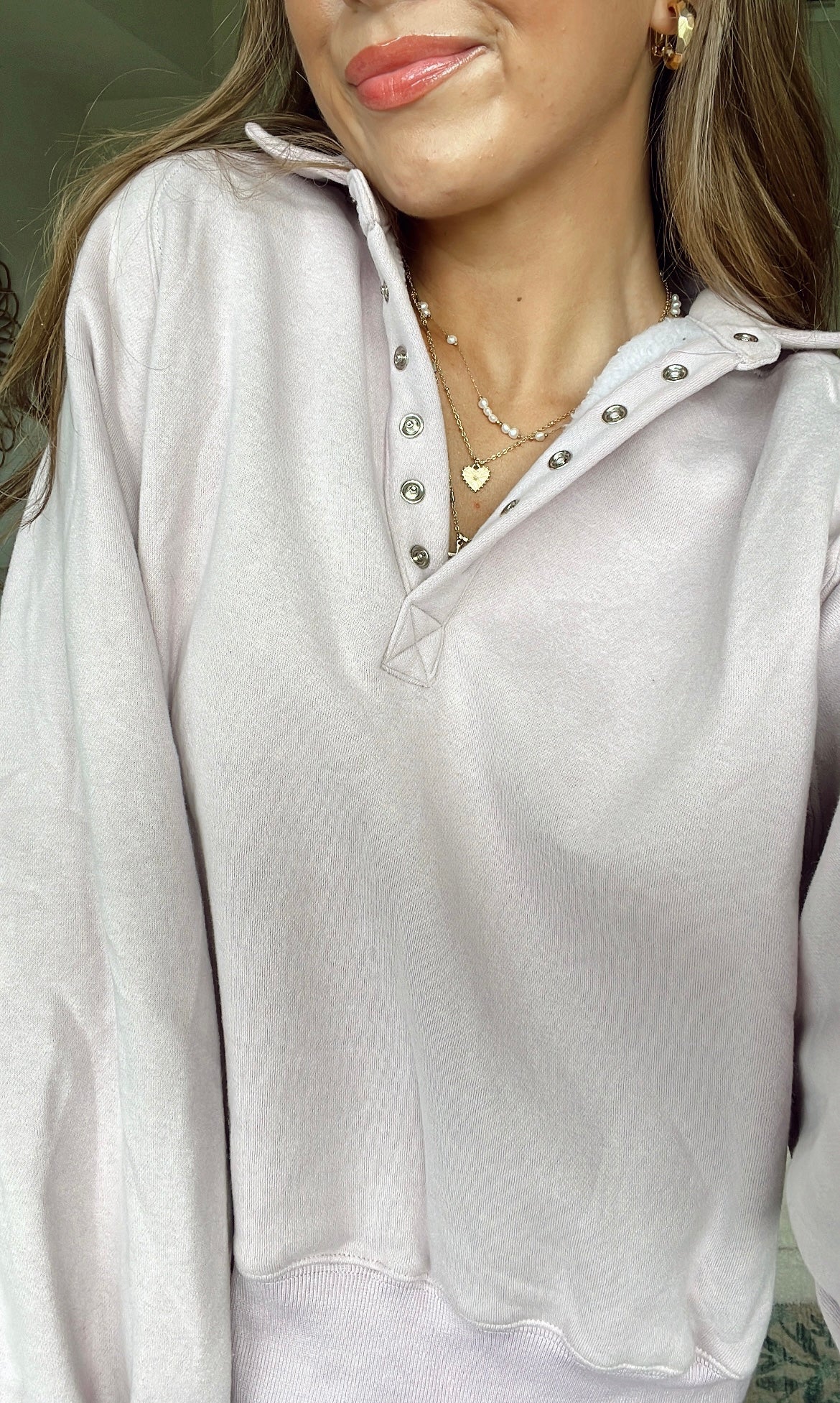 Lilac piper snap collared pullover sweatshirt
