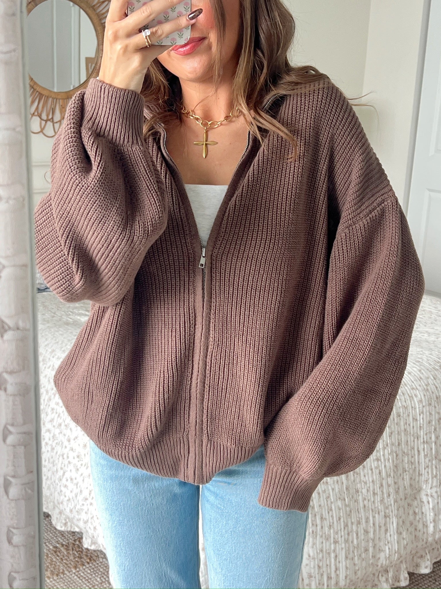 A cozy zip-up made for crisp days and easy layering. The Lulani Zip is crafted with a soft, ribbed knit and designed with a relaxed, slouchy fit you’ll love to sink into. The high collar and full zip closure let you style it open or closed, giving you effortless versatility whether you’re on the go or lounging in.
