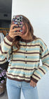 The Theo Stripe Cardigan brings an easy blend of retro charm and modern comfort. Designed with soft, neutral-toned stripes and a relaxed silhouette, it’s the kind of piece you’ll reach for again and again — whether layered over a tee for casual days or dressed up with trousers for a polished look.